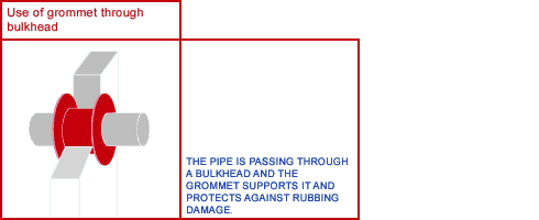 To reduce the possibility of abrasion to the pipework, it must be protected from damage where it penetrates bulkheads or walls, by the use of sleeves, grommets or bulkhead fittings. [7.16]