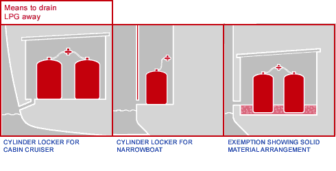 Cylinders are designed to release excess pressure that can build up if they're exposed to extreme heat. Under these circumstances, gas can quickly find its way into the interior of your boat presenting a significant and immediate risk of fire or explosion. To minimise the risk of this happening cylinders, cylinder lockers or cylinder housings must not be located near to heat sources. In the event of a fire on board, which causes the cylinders to overheat, an explosion could occur or the cylinder could jet gas onto a fire, causing it to escalate. To give you, or the emergency services, a chance to get to the cylinders to remove them they must be readily accessible and movable. [7.3]