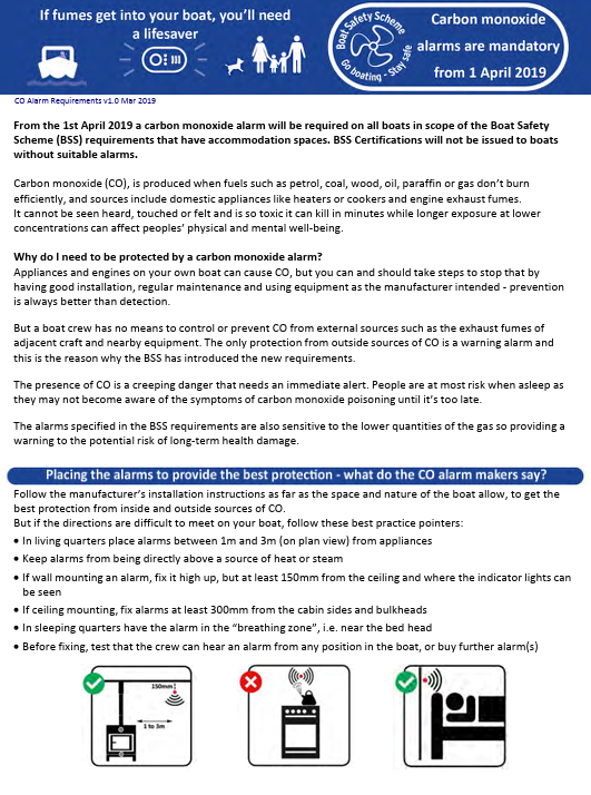 It covers what is required and how the checks will be carried out by BSS Examiners and how the alarms will help keep crew members safe, including: