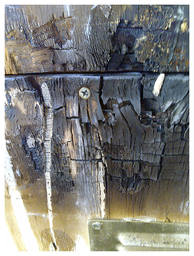 The wood dries out, and breaks down into a kind of charcoal and this in turn can catch fire.